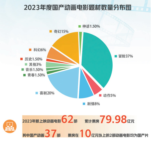 “春节档”上映的《熊出没·逆转时空》取得近20亿元的票房,在“六一”儿童节和接下来的暑期档,《白蛇:浮生》等国产动画新片和多部海外动画电影有望与观众见面;水墨动画长片《斑羚飞渡》、由动画短片集《中国奇谭》衍生的大电影、《哪吒之魔童降世》续集等出现在多个出品机构的片单里,2024年的动画电影市场令人期待。